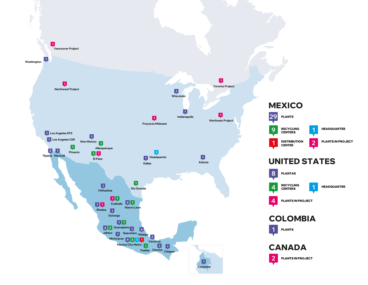 With 8 industrial plants and 4 recycling centers in the United States, we