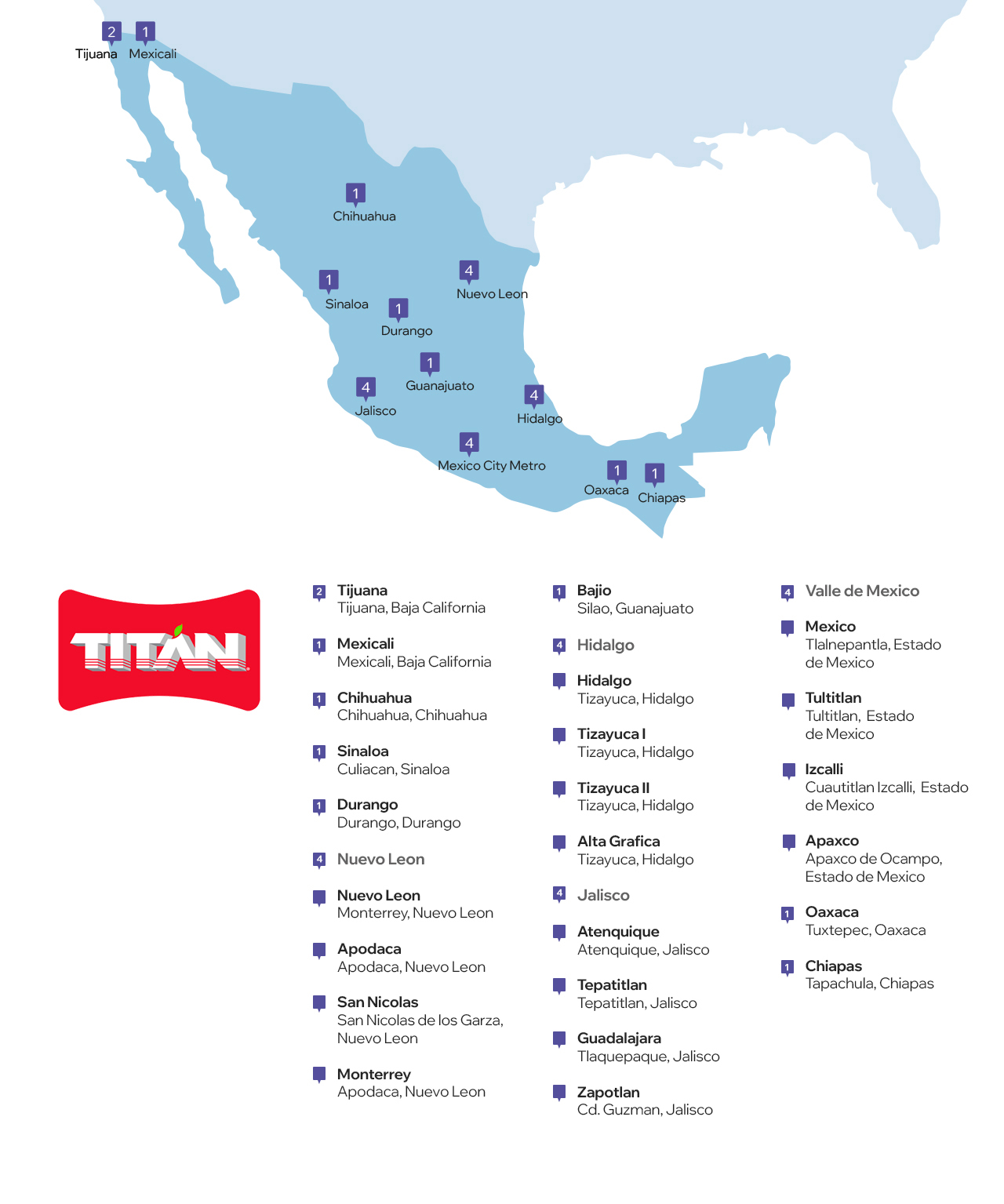 Titan is the benchmark for corrugated packaging in most industrial sectors across the country. With a modern industrial network of 25 strategically located plants nationwide, Titan ensures efficiency, quality, and coverage in every corner of Mexico.
